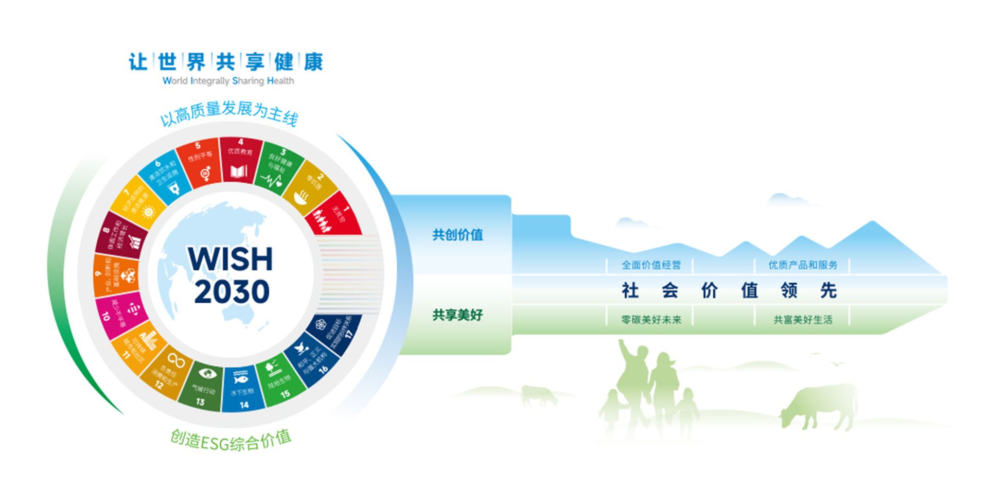 從“責(zé)任的力量”到“‘WISH 2030’金鑰匙可持續(xù)發(fā)展體系”,時刻展現(xiàn)伊利堅持“讓世界共享健康”的宏偉目標(biāo)
